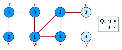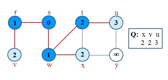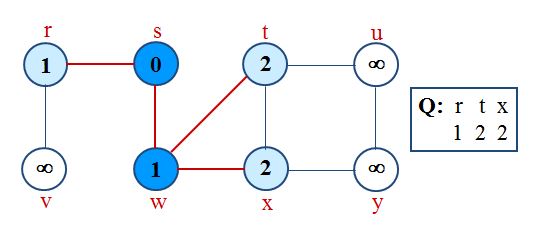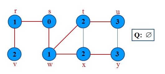 Traversal Loop After initialization, each vertex is enqueued and dequeued at most once, and each operation takes O(1). So, total time for queuing is O(V).