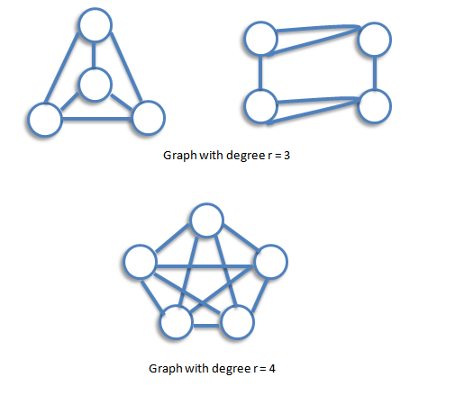 A graph is regular if all the vertices of G have the same degree. In particular, if the degree of each vertex is r, the G is regular of degree r.