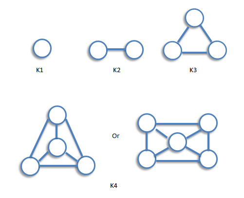 A computer graph is a graph in which every two distinct vertices are joined by exactly one edge. The complete graph with n vertices is denoted by Kn. The following are the examples of complete graphs.