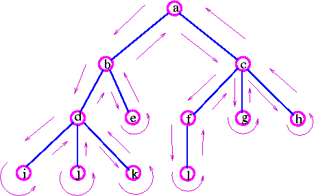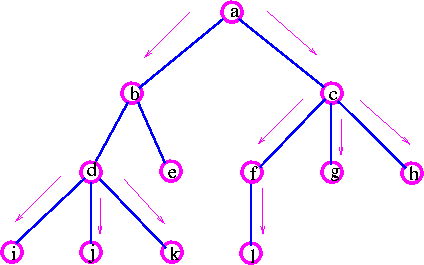 The basic idea of depth-first search is to penetrate as deeply as possible into a tree before fanning out to other vertices. This idea may be depicted as follows: