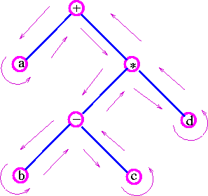 Another example, the expression a + {(b-c) × d} can represented by following tree:
