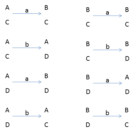 {A, B} X {C, D} = {AC, AD, BC, BD}