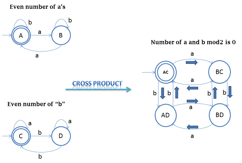 After taking cross product we will find the below DFA, already we have seen this DFA in previous exampels