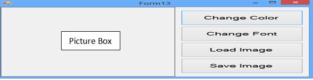 Design a new form as below, add the ColorDialog, FontDialog, OpenFileDialog and SaveFileDialog controls to the form and write the below code: