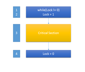Lock = 0 means process can enter the dressing room Lock = 1 means critical section is occupied with some other process.We will understand this Lock mechanism with dressing room augmentation. Suppose nine minions are opting for dressing room. [Here idea of a queue is not implemented till now, we will come to that point in later approaches].